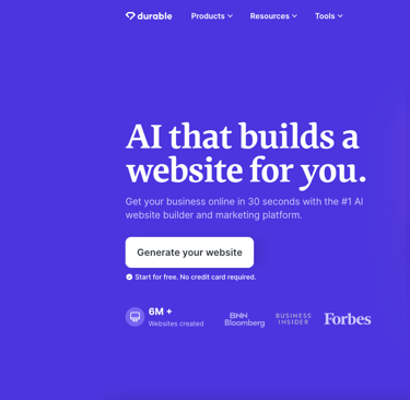 Durable writes the copy, designs the site, and adds images — all with AI.